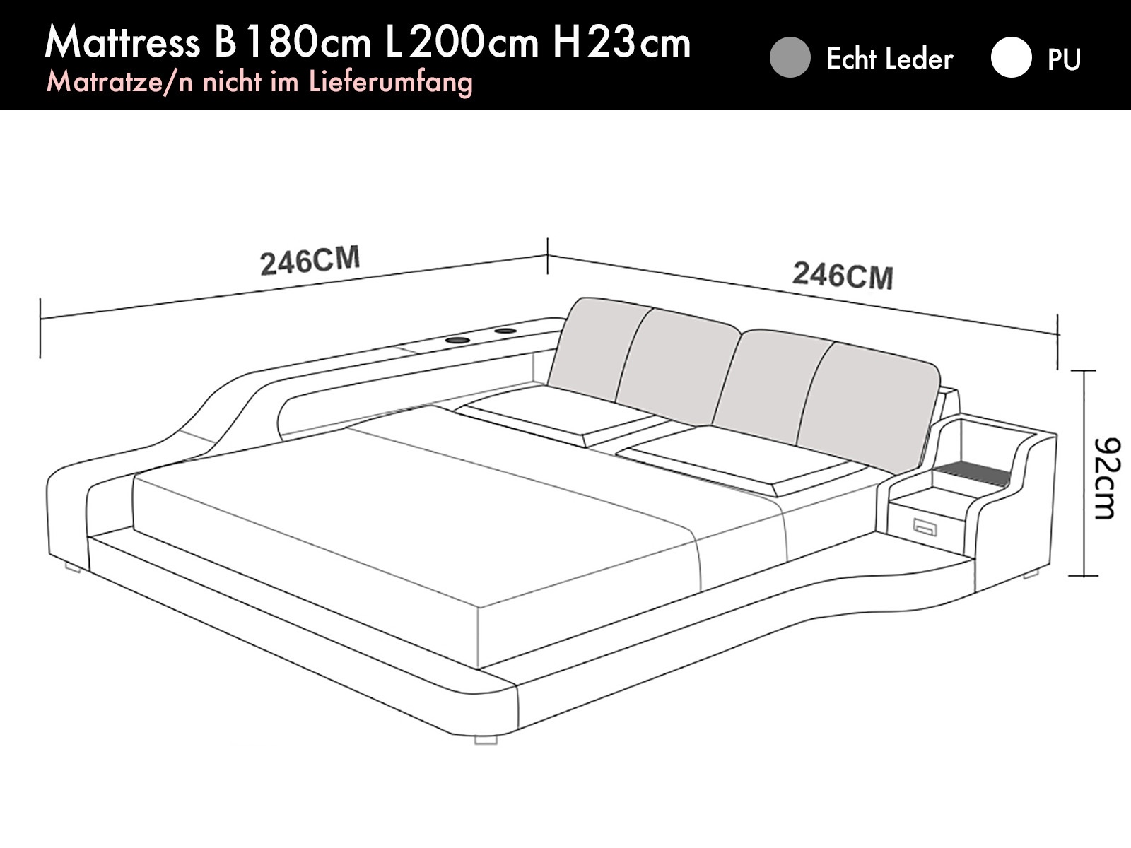 - Jedes Möbelstück aus unserer Produktion wird manuell in Handwerksleistung für Sie gefertigt. | Es ist bedingt möglich, dass Möbelstück in Länge und Breite Ihren Wünschen anzupassen. | Jede Anpassung ist möglich, beachten Sie aber bitte, dass zum einen die Lieferung einer Matratze nicht im Preis enthalten ist und Sie sicher sein sollten die für Sie passende Matratze zu finden. | Vielleicht möchten Sie auch kreative Features wie eine LED Unterboden Beleuchtung, USB Charger, einen Bettkasten oder Bluetooth Lautsprecher im Bett integrieren.