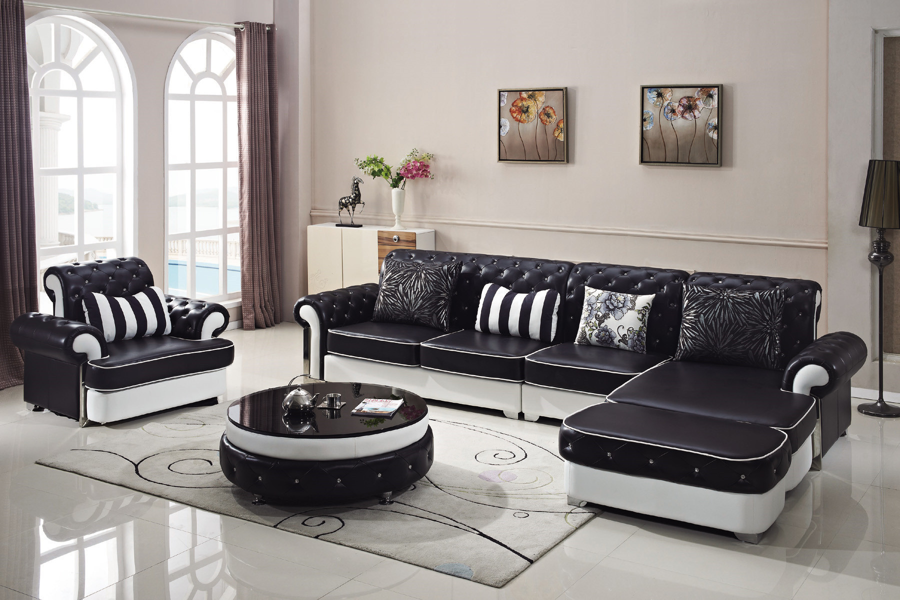 - Alle Teile sind frei im Raum aufstellbar, was bedeutet, dass alle Rücken bezogen sind. | Bitte beachten Sie, dass generell Leder Sofas als solche bezeichnet werden wenn alle gepolsterten Flächen wie Sitzflächen, Rückenflächen also Flächen welche mit unserem Körper in Berührung kommen in Echtleder sind. | Flächen welche zum Beispiel das Gestell verkleiden sind generell und branchenüblich aus Kunstleder.